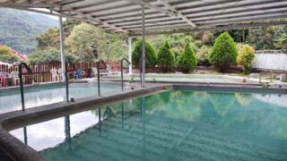 前回記事の続編です。台東県金崙温泉の各温泉旅館には大抵露天の温泉プールがあり、日帰り入浴を受け付けていますが、こちらのお宿でも同じく露天温泉プールを利用できますので、宿泊滞在中の晩と朝に入ってみました。私は客室で持参の水着に着替え、部屋備え...