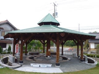浜村温泉のお湯は上で画像を載せた招き猫のタンクから分配する集中管理方式を採用しています。このためどこで入っても同じお湯を浴びることになるわけです。最後に簡単ながら、湯冷ましのために散歩している途中に見つけた、配湯先の施設の一部を取り上げてみます。