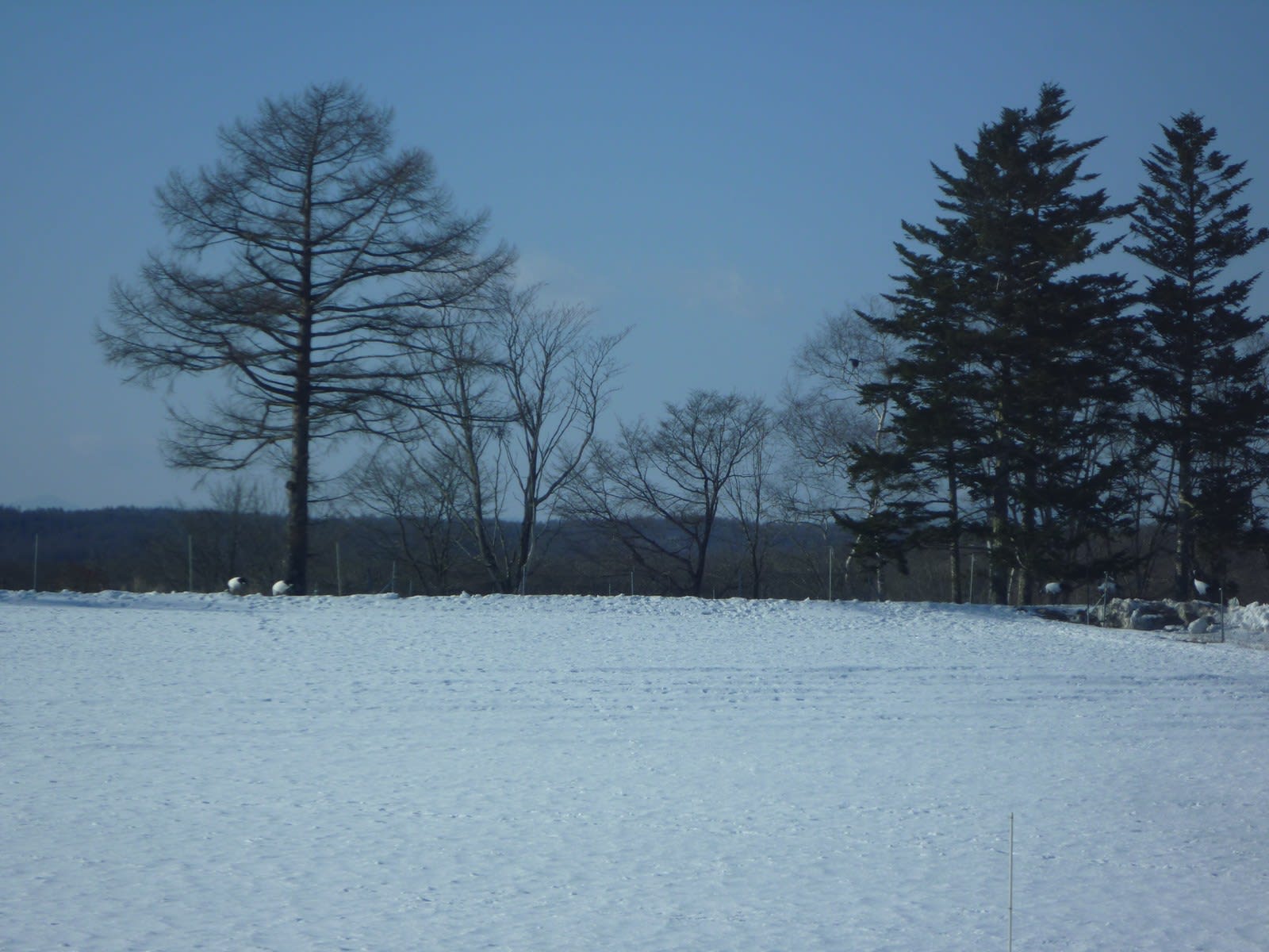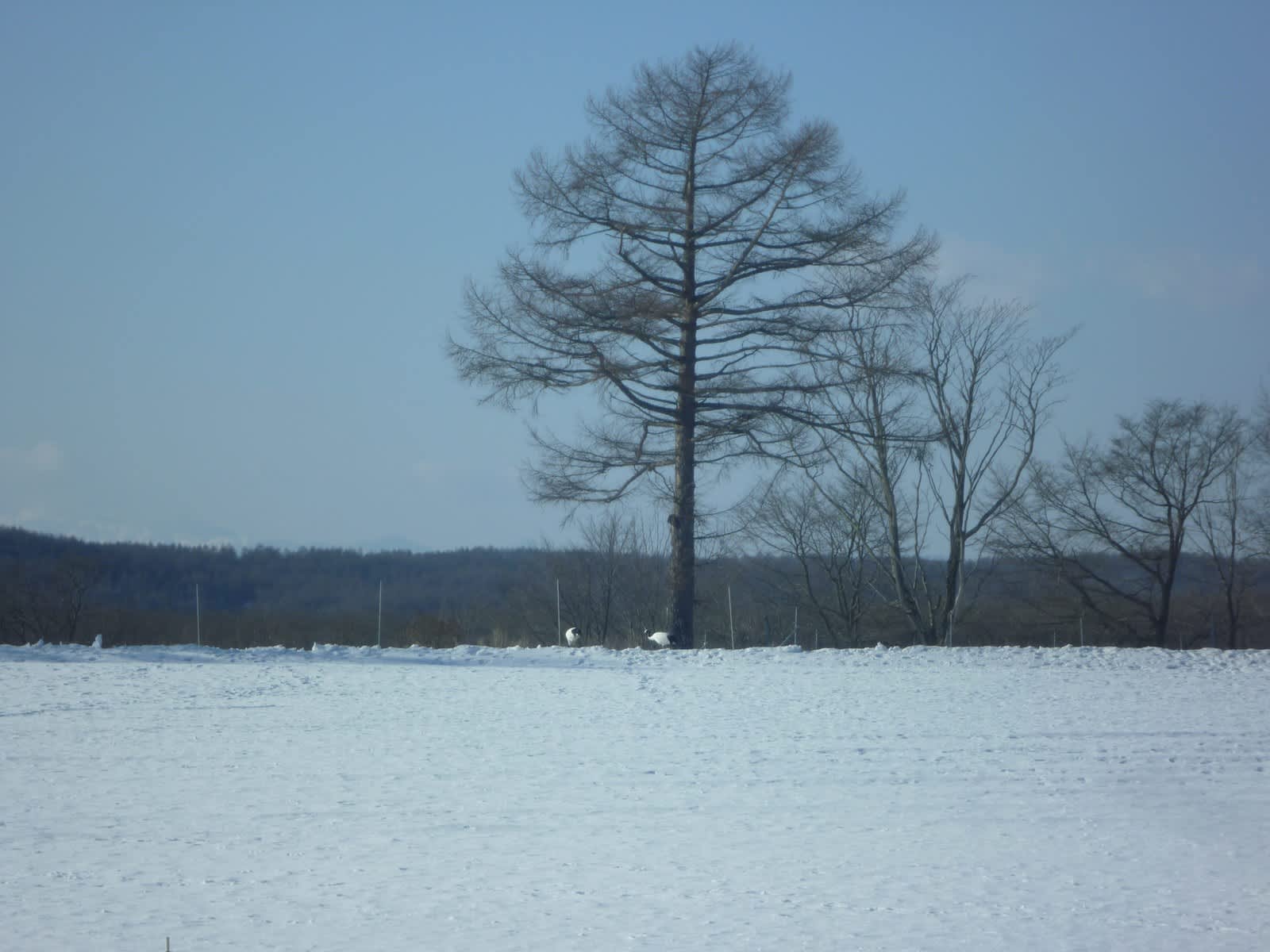 タンチョウが飛来する駅として有名な茅沼駅に停車中です。窓の外を見ると、タンチョウがいるではありませんか。車掌さんも親切に放送で案内してくれました。