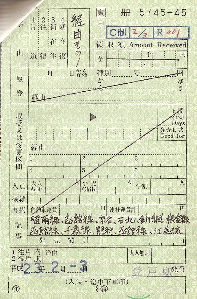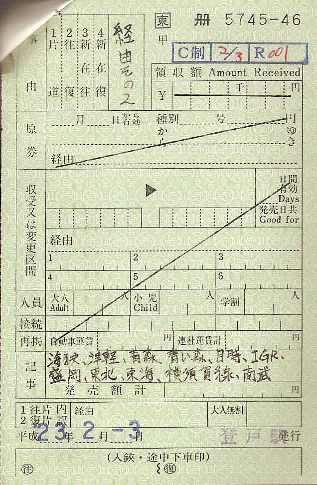 経路数が多くなっちゃった原因は、ルート選択もさることながら、「北斗星」を利用すべく北海道から本州間を在来線経由にしたため、「青森・青い森・目時・IGR・盛岡」なんて経路を記入する必要性が発生したことも大きな要因かと思います。