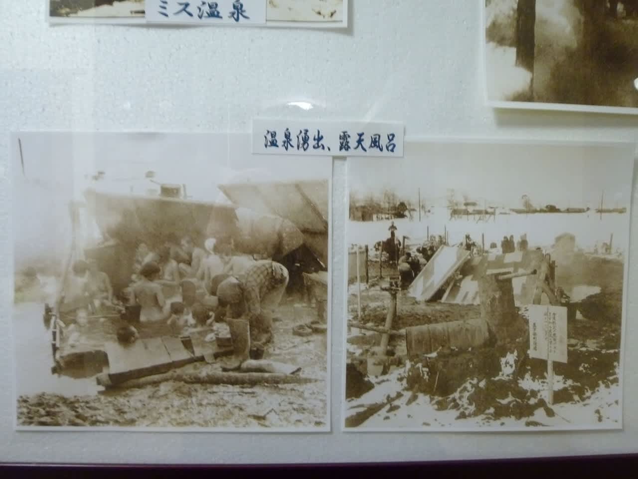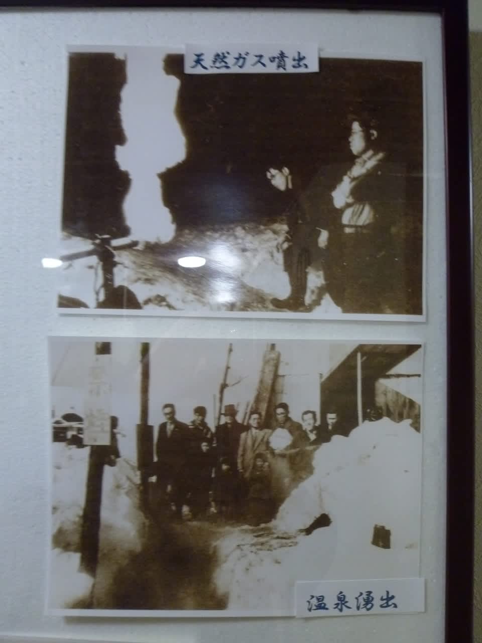 掘削に成功したガスに火を灯している写真がありますが、天然ガスは現在でも長万部町営ガス事業で用いられています。また当時の露天風呂も写っていますが、狭い湯船に女性が芋洗い状態で入っているのがわかります。今ではとても想像できない光景ですね。