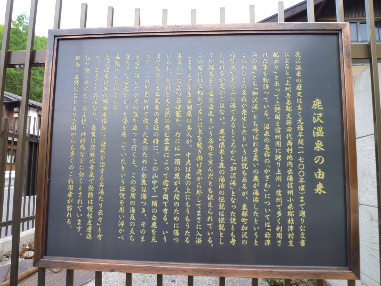 今に比べて交通がはるかに不便だった明治~昭和初期に全国津々浦々を巡った田山花袋の著書『温泉めぐり』 (岩波文庫)では、花袋の知人であるK君の話として伝聞ながら上州の鹿沢温泉に言及しており、
