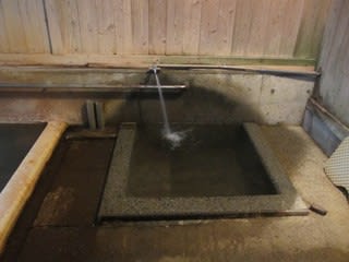 滔々と注がれる源泉は惜しげもなく浴槽の角からあふれ出ていきます。お湯は山吹色に笹濁り、カーボンを連想させる焦げたような臭いに土気臭と金気臭が混ざって匂い、口に含むと甘味と弱い塩味、そして土気と金気に加えて炭酸味が、それぞれ控えめに舌の上で主張しあいます。湯口では42~3℃あるお湯も、湯船に落とされるとややぬるめの38~9℃と、ややぬるめの湯加減で落ち着きます。ギシギシと引っかかる浴感はいかにも土類泉らしい性質でしょう。それほど熱くなく、むしろぬるいお湯ですから、じっくり長湯してお湯を堪能したいところですが、何故かこの湯船に浸かっていると、長湯を許してくれない不思議な力が体にのしかかり、何度試してみても数分で湯船から上がりたくなる感覚にとらわれてしまうのです。これはこのお湯が持つ独特のパワーによるものか、あるいは単に私の体調の問題か、いまだに謎のままですが、もしかしたら得も言われぬ神通力みたいなものをこのお湯は有しているのかもしれませんね。