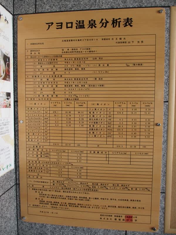 また、玄関の壁には温泉分析表が掲示されていました。利用者が必ず通る目につきやすい場所に掲示するのですから、温泉の質には自信があるのでしょうね。