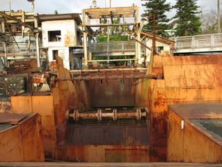 下手に小奇麗にせず、操業を停止した時の状況をそのまま手をつけずに保存しているので、あちこちで錆びが浮き出たり損傷が発生していたりしますが、かえってこの方がリアリティがあり、当時の躍動・振動・轟音・臭気などが直に伝わってくるようでした。