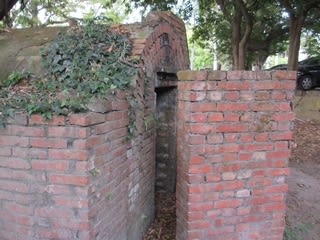 煉瓦積みの塀で囲まれたエリアの中には古い平屋の建物が残されており…