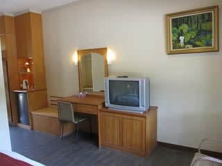 客室内の様子。よく手入れされており、綺麗で良いお部屋。ホテルで一般的な備品やアメニティは一通り揃っています。冷房も使えますが、この日は窓を開けたら爽快な風が室内へ流れ込んできたので、文明の利器の力は借りず、天然の涼風で快適に過ごせました。