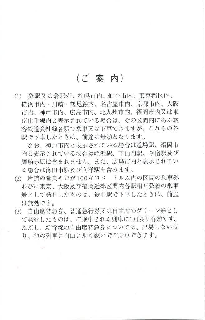 こちらはそれぞれの裏面です。左(上)は乗車券、右(下)は特急券です。