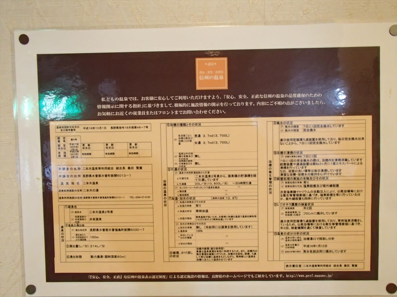 下足場には湯使いに関する実に細かな情報開示が掲示されており、施設側のお湯に対する誠意が伝わってきます。