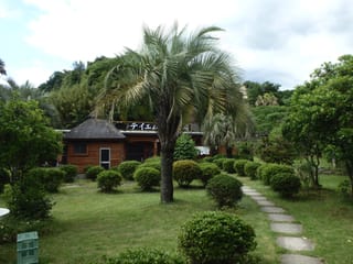 砂浜沿いに「温泉公園」と称する区画が広がっており、看板に従って中に入って受付小屋の中にいたおじさんに声をかけると、温泉はここだとのこと。おじさんに湯銭を支払い、ロッカーキーを受け取って敷地内へと入りました。