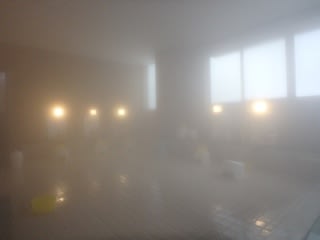 冬に訪れたため、浴室は湯気で真っ白に煙っており、このような見辛い画像となってしまいました。申し訳ございません。お風呂の様子をよくご覧になりたい方はお手数ですが公式サイトでご確認ください。