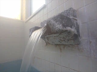 温泉は白い析出がビッシリとこびりついた湯口より大量に吐出されており、浴槽の縁から惜しげもなく溢れ出ています。私が湯船に入ると一気にオーバーフローし、浴室内は軽い洪水状態となってしまいました。浴槽の容量に対して投入量が多いため、お湯は常にフレッシュであり、浮遊物なども見られず大変クリアです。言わずもがな、湯使いは完全放流式です。