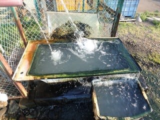 温泉の源泉と大きなタンクが設置されており、絶え間なく温泉が汲み上げられているのです。この温泉は当地で入浴などに供されるのではなく、わざわざ斑尾の某リゾートホテルまで運搬され、そこのお風呂で使われているんだそうです。そして運搬される時以外のお湯はいつもタンクに溜められ、オーバーフロー管から大量の温泉が捨てられているのです。とはいえ、こんなもったいぶった表現をしなくても、温泉マニアにとっては超有名な野良湯ですから、このブログで取り上げるまでもないでしょう。最近はテレビでも紹介されたらしいので、温泉マニアのみならず、珍風景が好きな方には既に名の知れた温泉なのかもしれません。