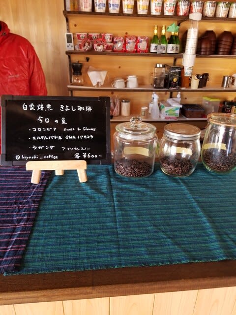 暖を取るべくコーヒーを注文しました。素晴らしいことに豆を選べ、しかもその場でドリップしてくれるのです。なんて贅沢なんでしょう。山の上とは思えません。