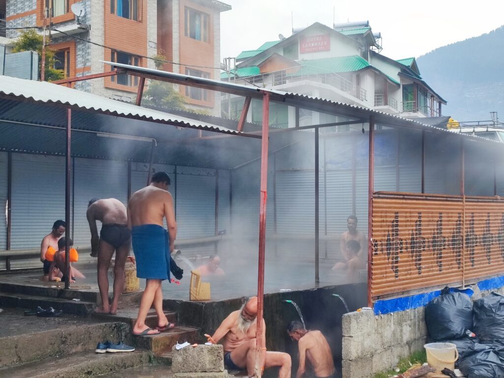 湯船に浸かって寛ぐ人、仲間とおしゃべりする人、湯口から落ちる温泉を肩に当てて打たせ湯を楽しむ人・・・入浴スタイルはそれぞれですが、そのいずれもが日本でも同様に見られる行動様式であり、インドでもこの地域では人々の生活の中に温泉が根付いていることを知って、同じく入浴文化がある日本人の一人として嬉しくなりました。