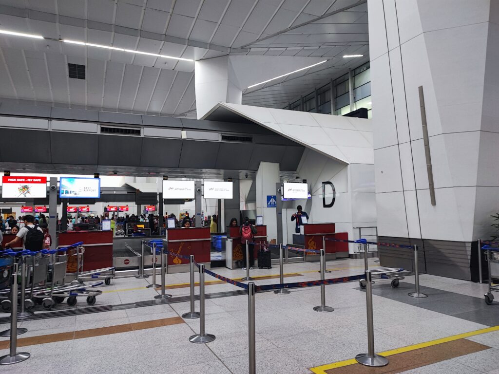 温泉があるマナリ郊外やマニカランの拠点となる空港はクル(ブンタール)空港ですが、2025年時点でデリーからクルへ飛ぶ飛行機は週3~4便しかなく、しかもAlliance Airが運航する早朝発の1便のみです。私が搭乗する日の出発時刻は午前6:45でした。となれば午前4:30頃には空港に着いておきたいところ。デリーの市街地から空港まではメトロ(電車)でアクセスできますが、飛行機のチェックイン時間に間に合うような電車はありません。計画段階ではデリー中心部のホテルを丑三つ時にチェックアウトし、ホテルの送迎車かUberの車で空港へ向かうつもりでしたが、当日はホーリー祭のため交通規制が行われるらしく、複数のホテルに問い合わせたものの、どのホテルからも送迎を拒否されてしまいました。この調子ではUberの手配も難しいでしょう。前夜にデリー空港内のホテルに宿泊するという選択肢もありましたが、宿泊費がびっくりするほど高かったので・・・