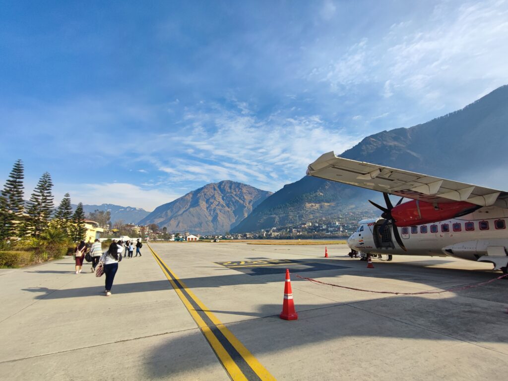 デリーから約1時間半の空の旅。朝8:10にクル空港へ到着。飛行機を降りたら歩いてターミナルへ向かいます。デリーは猛暑でしたが、ヒマラヤの麓であるクルはかなり寒く、手荷物から慌ててダウンジャケットを取り出しました。