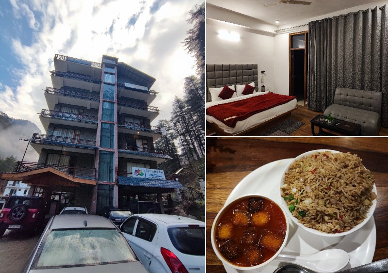 6泊目はマニカランからほど近いカソールという街です。このカソールは観光拠点になっているような場所で、ホテルや飲食店が比較的多くありますが、今回のホテルは中心部からちょっと離れた場所に立地しており、買い物や食事で不安があったものの、買い物については事前にマニカランで必要なものを調達し、夕食と朝食についてはホテル内のレストランを利用できたので、特に問題はありませんでした。
