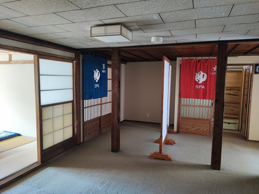 今回私は期間限定の外湯を選択しました。本棟の隣隣するこの建物に外湯が設けられています。ちなみにこの建物は以前「太田旅館」だったはず。