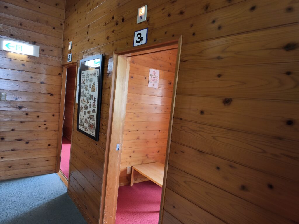 家族風呂は4室あり、利用の前日から予約できるようですが、今回は予約無しで祝日の午前中にいきなり訪問し、番台で空いているか伺ったところ、問題なく利用可能とのことで、番台の前に設置されている券売機で所定の料金を支払い、その場で指定された3番浴室へ向かいました。