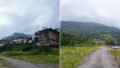 乗用車で行けるところまで行くと、東64線の路盤が途切れ、川へ向かってガクンと落ちるようなポイントへ到達します(上画像)。東64線は水害によってここから先の区間が喪失してしまったため、行政によって復旧工事が行われています。右側に青いアコーディオン式のゲートが見切れていますが、この先は工事区間となりますし、工事車両や重機がここを行き来することもあるかと思いますので、邪魔にならないよう、私はこのポイントからちょっと手前にある広い路肩に車を停めました。