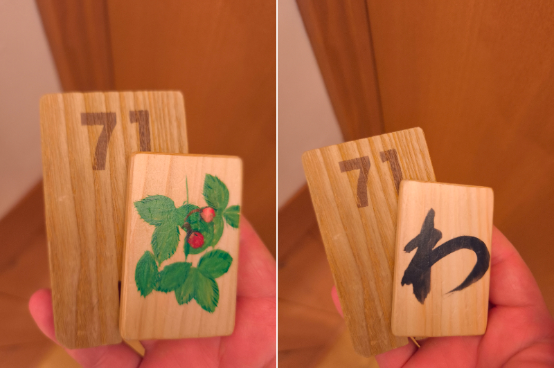 さて湯銭を支払うと、番台の方から小さな木の板が渡されました。木札の片側には花の絵が、反対側にはひらがな一文字が書かれているのですが、番台の方はこの板で現在の利用人数を把握しているのだとか。浴場内のスペースは限りがあるため、このような措置をとっているようです。もちろん退館時にその板を番台へ返却します。デジタル機器を使っても管理できるところを、敢えて昔ながらの木札で管理するところに、昭和から地元に愛されてきた銭湯としての矜持が感じられます。