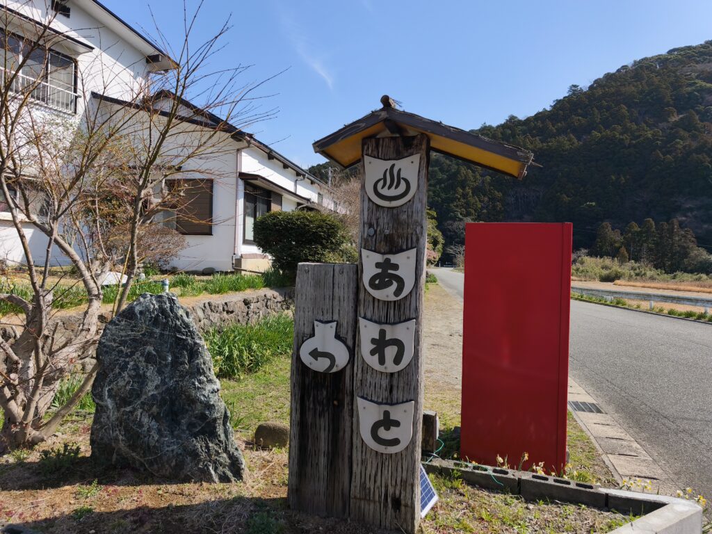春が近づき夜の冷え込みが少しずつ緩んできた2026年3月初旬の某日、鴨川市内の某漁港で夜明け前から釣りを始め、アジを爆釣して悦に入っていた私は、悦のみならず湯にも入って更に気持ち良くなろうと考え、鴨川市街からちょっと離れた里山の一角にある粟斗温泉へ向かいました。こちらの施設はしばらく休業していましたが、リニューアル工事を経て2025年11月末に営業を再開しています。