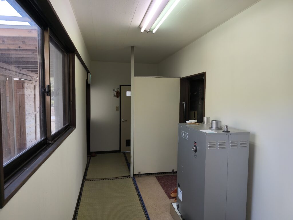 1階の廊下を進んで突き当たりに位置している浴室へ向かいます。途中、廊下の右側には休憩用のお座敷があり、利用者は無料で利用できるほか、有料の休憩個室もあるそうです。また、ごくたまに飲食営業を行うようです。