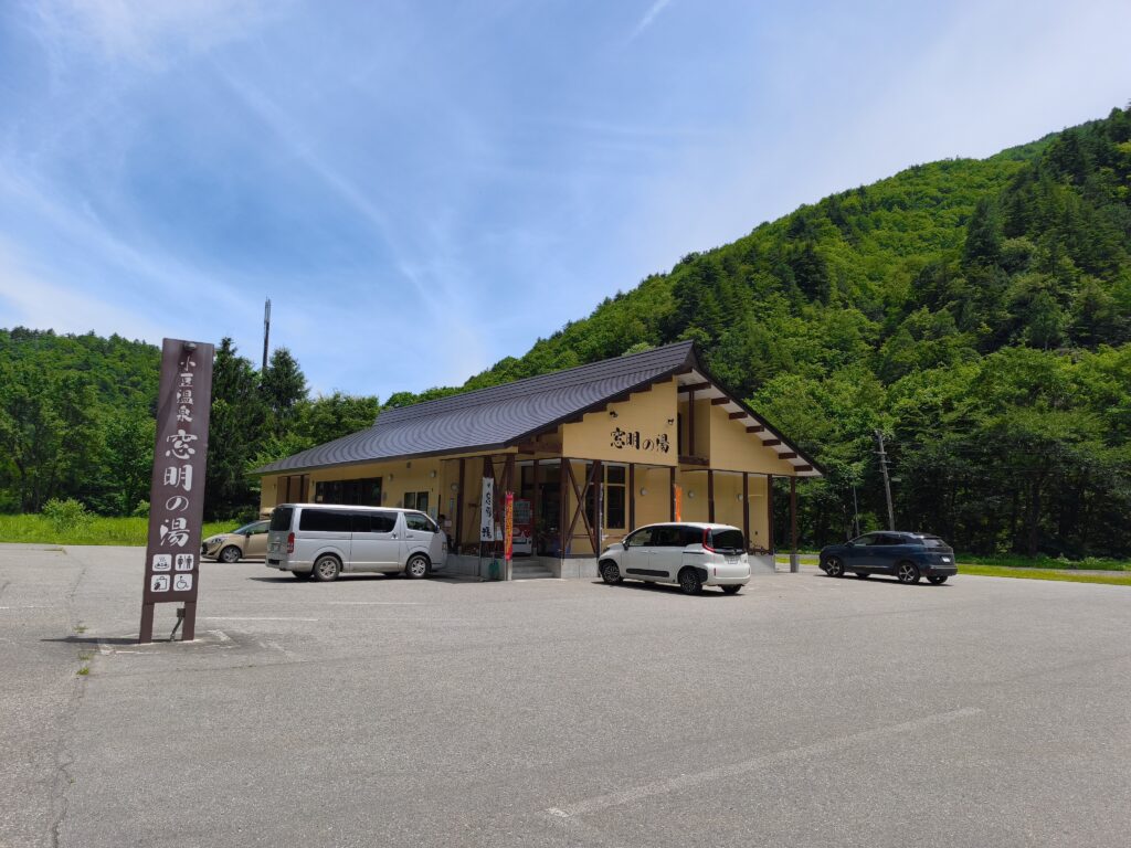 さてその下山後に、登山の汗を流すべく立ち寄ったのが「小豆温泉 窓明の湯」です。こちらの施設は以前にも拙ブログで取り上げていますが(当時の記事はこちら)、以前と現在とでは全く異なる場所及び建物で営業しており、以前は国道を覆うスノーシェッドの途中から脇道へ逸れて坂道を上がった先にあったのですが、2021年3月に国道沿いの分かりやすい場所へ移転して再オープンしています。移設後の現施設は未訪問だったため、今回利用してみることにしました。