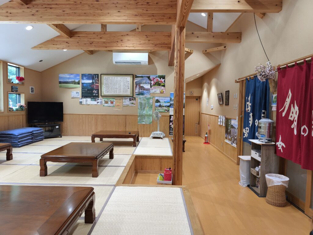 玄関から中に入り、受付のおばちゃんに直接料金を支払います。木材を多用している館内からは木のぬくもりが伝わり優しい印象を受けます。受付から奥へ進むと左側には座敷が設けられ、右側には男女別浴場の暖簾が掛かっています。エアコンの効いた座敷ではお風呂上がりに休めるほか、スパゲッティ程度の軽食ならば食べられるみたいですよ。